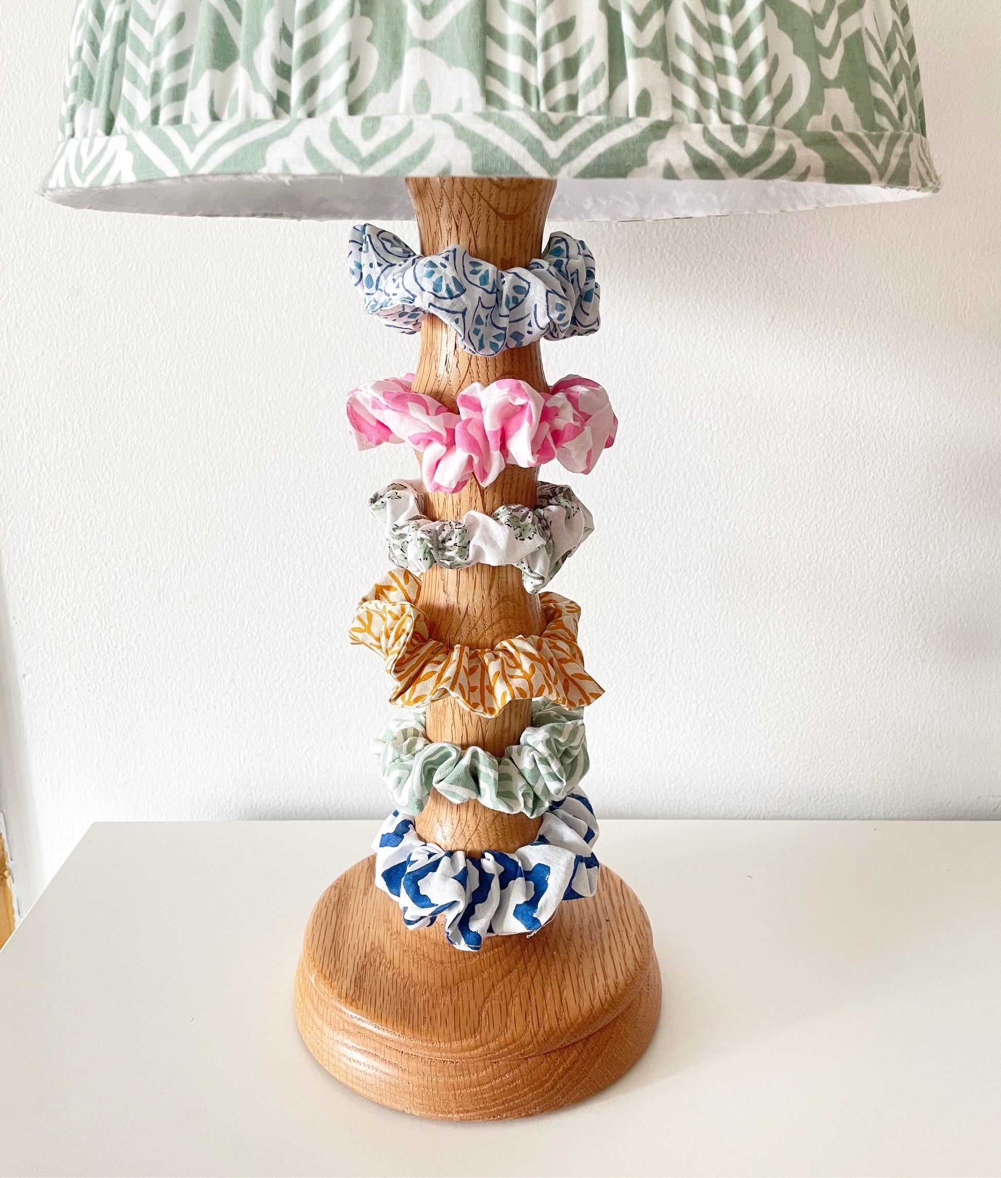 Made with the surplus fabric from our lampshades, these scrunchies will brighten up your day.